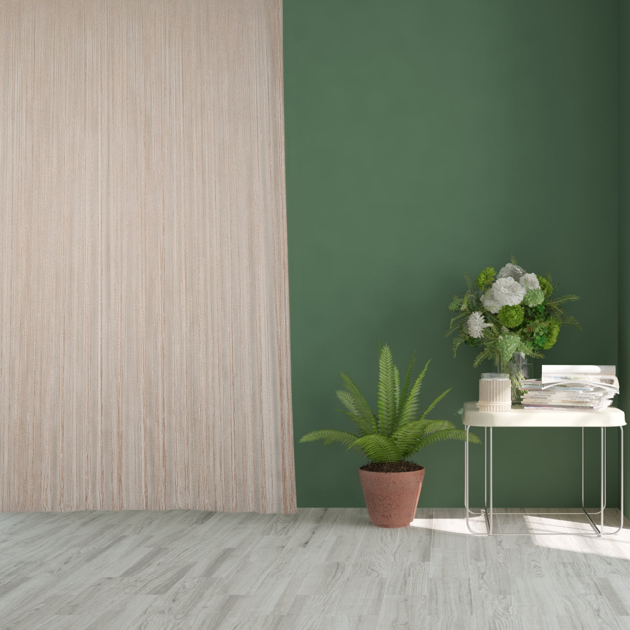 Wenn Sie einen Fadenvorhang kaufen, müssen Sie diesen möglicherweise passend zuschneiden. Hierfür sollte Sie die Fäden zuerst vorsichtig zusammenbinden, um ein Verheddern zu vermeiden. Dann können Sie die gewünschte Länge markieren und abschneiden.