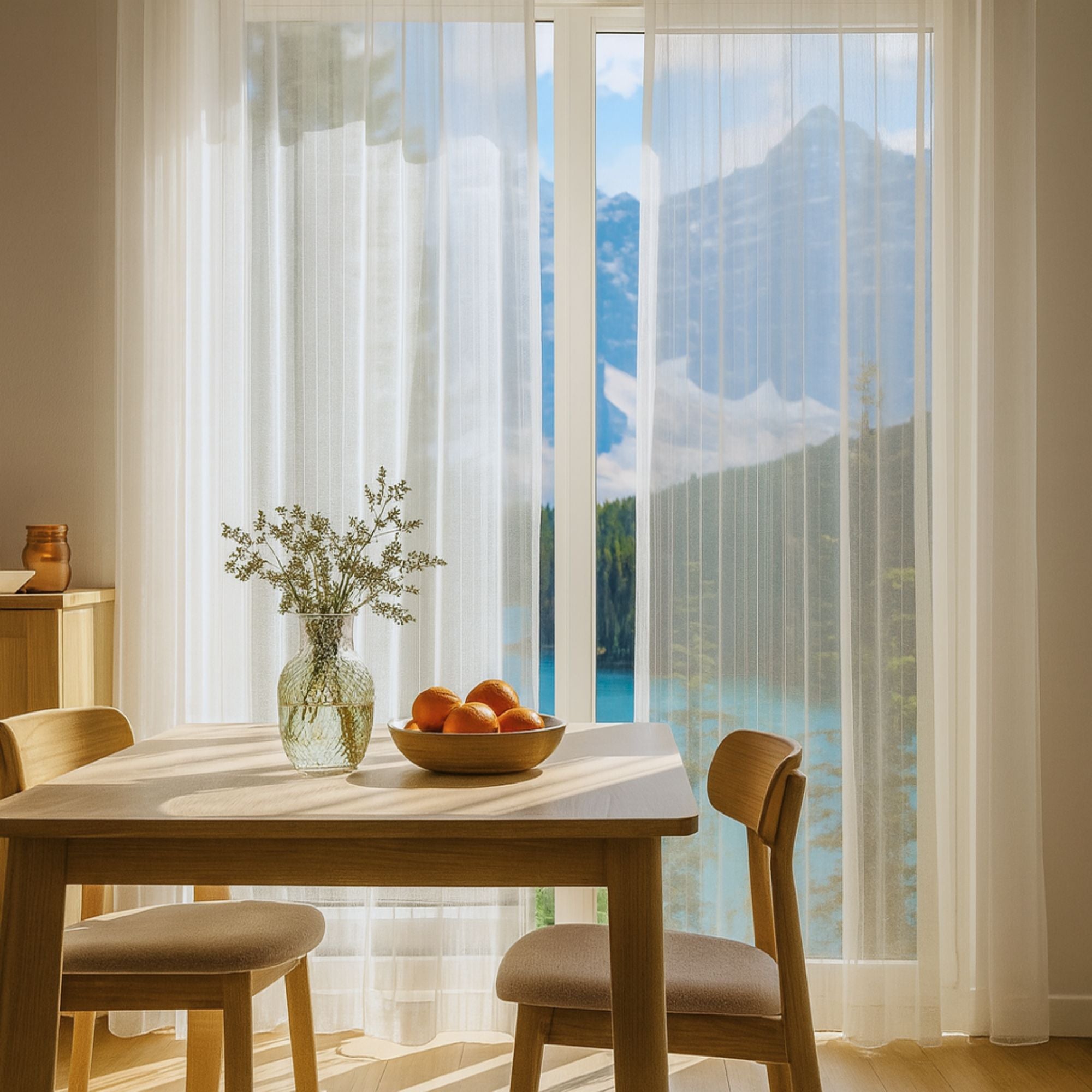 Tagesvorhänge sind aus einem leichten Material gemacht und können als transparente oder halbtransparente Variante gekauft werden. Sie bieten guten Sichtschutz und lassen trotzdem viel Tageslicht in den Raum.